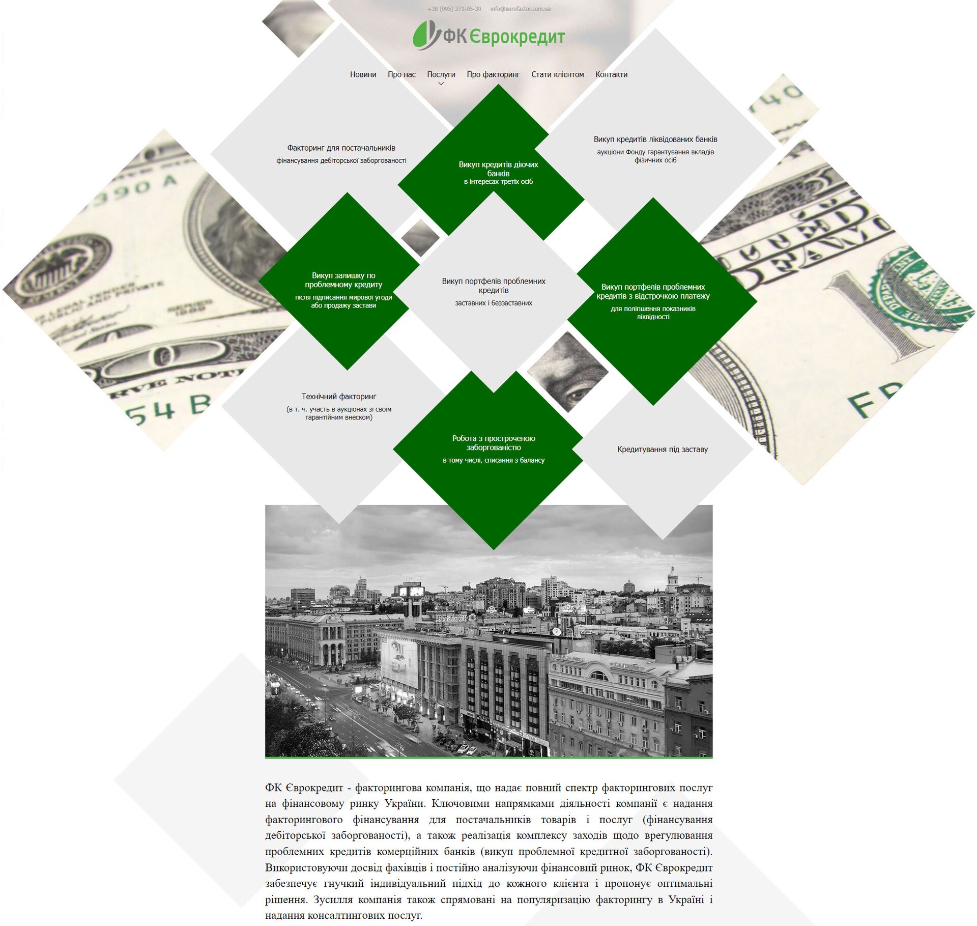 FC Eurocredit factoring company provides a full range of factoring services. The key goals of the company are the provision of specialized factoring services for suppliers of goods and services on the Ukrainian market, the implementation of measures to settle problem loans of commercial banks (buying out problem credit debt), as well as collateral lending.