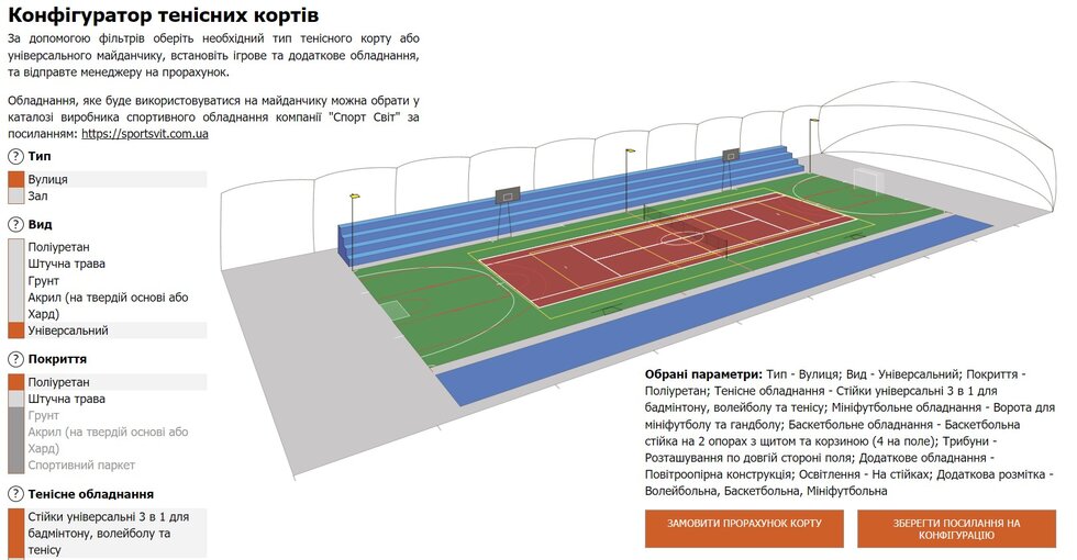 Розробка сайту з конфігуратором для української будівельної компанії "KORT". Окрім звичного багатомовного сайту з адаптивністю, на сайті kort.com.ua присутній конфігуратор кортів, що дозволяє зібрати спортивний майданчик під себе, виходячи з власних бажань, й швидко прорахувати його вартість.